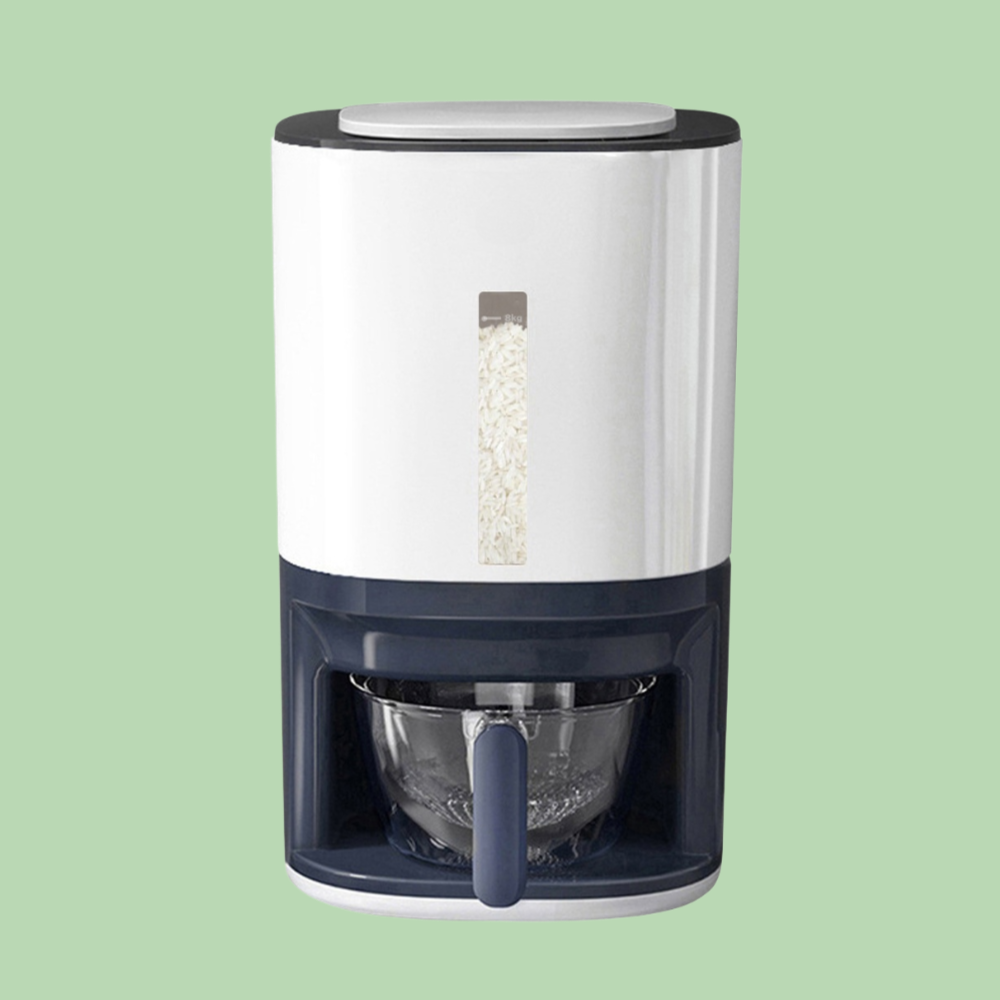 家庭用押圧計量米樽は、ワンタッチで簡単に米を計量可能。密閉保存で鮮度を保ち、米の湿気や虫害も防ぐ設計。キッチン収納にも便利なコンパクトサイズ。
